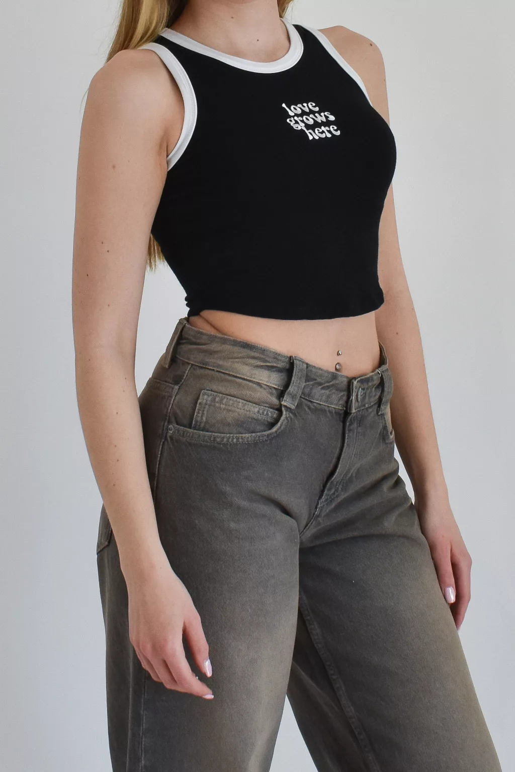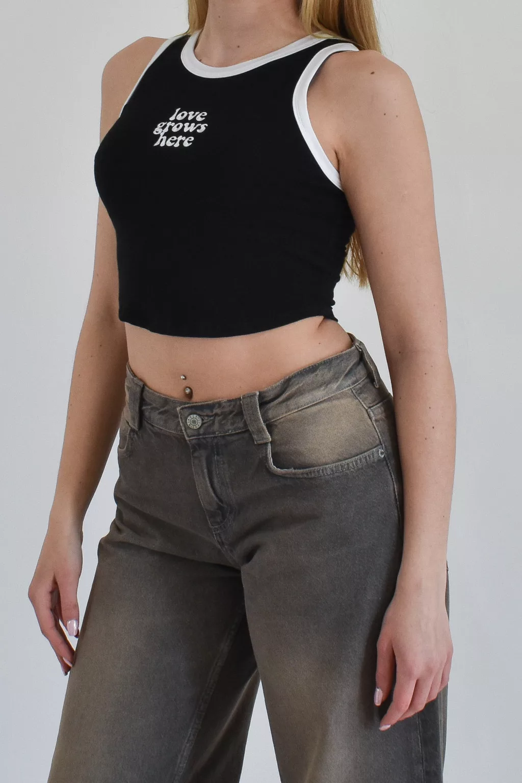 A modell S-es méretet visel